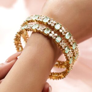 Set of 2 Rhodium-Plated White & Mint Green Cubic Zirconia Studded Handcrafted Luxe Bangles – 02-Apr