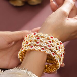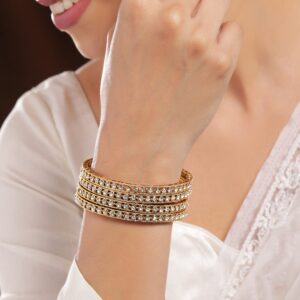 Set of 4 18 K Mehndi Gold-Plated Crystal White Cubic Zirconia Studded Bangles – 2.8