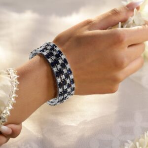 Set of 4 Rhodium-Plated Blue Sapphire & Cubic Zirconia Studded Premium Bangles – 02-Aug