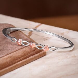 Silver Rhodium Plated 925 Sterling Silver & Rose Gold Heart Detail Minimal Bracelet – Silver