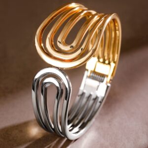 18K Gold & Rhodium Plated Dual Tone Sculptural Bold Statement Open Cuff Bracelet – Dual Tone