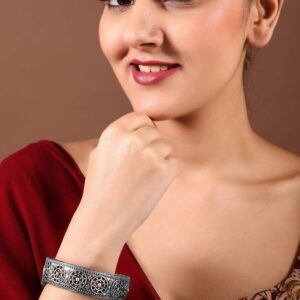 Oxidised Filigree Silver Plated Handcrafted Bracelet – Silver