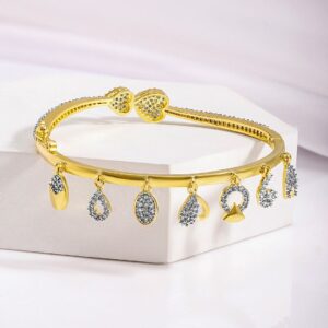 Premium 22K Gold-Plated AD & Zirconia Studded Openable Bangle Style Bracelet with Charms – Gold