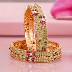 Set of 4 22K Gold-Plated Bangles with Ruby & Emerald Accents and Kundan Detailing – 02-Apr