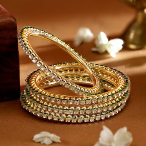 Set of 4 18K Gold-Plated Dazzling AD Studded Handcrafted Premium Bangles for Women – 02-Jun