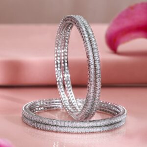Set of 2 Rhodium-Plated White Cubic Zirconia Studded Handcrafted Luxe Bangles for Women – 02-Aug