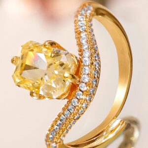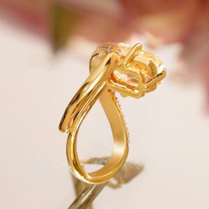 Ring : 18K gold-plated adjustable ring with a yellow sapphire stone and cubic zirconia accents on a graceful curved band, perfect for wedding, party, and festive elegance. Perfect for Elegant Styling: Whether paired with ethnic or western attire, this statement ring adds glamour and grace, ideal for cocktail events, festive gatherings, and special celebrations. Material : & Care Dimension : Ring Size : Adjustable Ring Material : Brass Net Quantity : 1 Ring Net Weight : 12 Gram Care Label : It is advisable to avoid contact with water and organic chemicals i.e. perfume sprays. Store jewellery in airtight box. After use, wipe the jewellery with soft cotton cloth.