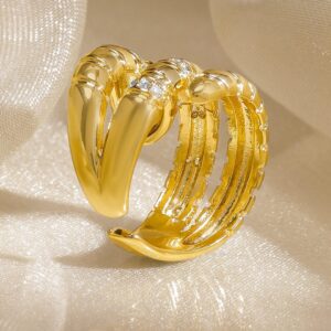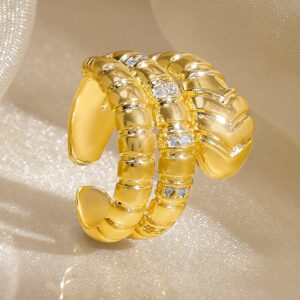 Ring : Inspired by the graceful form of a serpent, this 18K gold-plated brass statement ring features a bold coiled silhouette with textured details and beaded accents. The adjustable fit and luxurious design make it a must-have for glamorous dressing. Luxurious Appeal: A must-have piece for fashion-forward women who love iconic statement jewelry that blends symbolism with sophistication. Material : & Care Dimension : Ring Size : Adjustable/Openable Ring Material : Brass Net Quantity : 1 Ring Net Weight : 6.3 Gram Care Label : It is advisable to avoid contact with water and organic chemicals i.e. perfume sprays. Store jewellery in airtight box. After use, wipe the jewellery with soft cotton cloth.