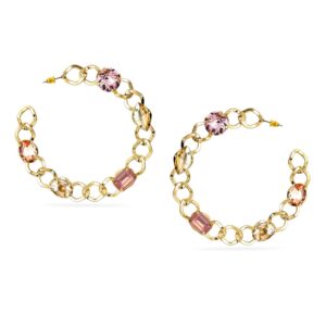 Earrings : These elegant 18K gold-plated hoop earrings feature a unique chain link design adorned with pink crystal stones, creating a sophisticated and modern look. Occasion : Bring your style to a whole new level with this handcrafted piece of jewellery. When you’re celebrating a special Occasion : – a birthday, wedding, or personal milestone – this piece adds that extra something that makes us feel special and looking our best. Material & Care Dimension : Length : 8.5 cm, Width: 1.2 cm Material :Brass Care Label : It is advisable to avoid contact with water and organic chemicals i.e. perfume sprays. Store jewellery in airtight box. After use, wipe the jewellery with soft cotton cloth.