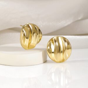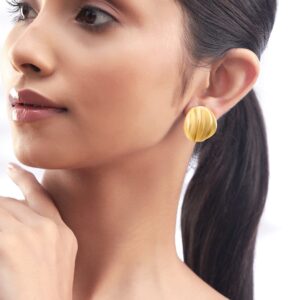 Earrings: Enhance your look with these chic 18K gold plated circular stud earrings from . Featuring an elegant wave design, these lightweight earrings add a touch of sophistication to any outfit. Occasion : Bring your style to a whole new level with this handcrafted piece of jewellery. When you’re celebrating a special Occasion : – a birthday, wedding, or personal milestone – this piece adds that extra something that makes us feel special and looking our best. Material : & Care Dimension : Length : 2 cm ; Width ; 1.5 cm Material : Brass Care Label : It is advisable to avoid contact with water and organic chemicals i.e. perfume sprays. Store jewellery in airtight box. After use, wipe the jewellery with soft cotton cloth.
