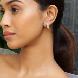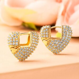 Earrings : Add a romantic touch to your jewelry collection with these 18K gold-plated heart-shaped hoop earrings. Adorned with shimmering cubic zirconia, they bring elegance and charm to every outfit. Occasion : Bring your style to a whole new level with this handcrafted piece of jewelry. When you’re celebrating a special Occasion : – a birthday, festive, party or personal milestone – this piece adds that extra something that makes us feel special and looking our best. Material & Care Material : Brass Length : 2 cm, Width : 2 cm Weight : 8.7 gram Net Quantity : 1 Pair of Earrings Care Label : It is advisable to avoid contact with water and organic chemicals i.e. perfume sprays. Store jewellery in airtight box. After use, wipe the jewellery with soft cotton cloth.