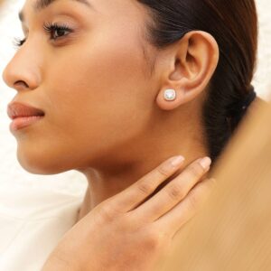 Earrings : Adorn your ears with 18K gold-plated round stud earrings featuring a sparkling cubic zirconia centerpiece, framed with radiant pavé detailing for a timeless and refined touch. Occasion : Bring your style to a whole new level with this handcrafted piece of jewelry. When you’re celebrating a special Occasion : – a birthday, festive, party or personal milestone – this piece adds that extra something that makes us feel special and looking our best. Material & Care Material : Brass Length : 0.8 cm, Width : 0.8 cm Weight : 3.10 gram Net Quantity : 1 Pair of Earrings Care Label : It is advisable to avoid contact with water and organic chemicals i.e. perfume sprays. Store jewellery in airtight box. After use, wipe the jewellery with soft cotton cloth.