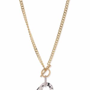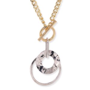 This 18K gold-plated long chain necklace blends gold and silver tones in a chunky chain with dual-ring pendant. Its bold, modern design adds sophistication to any look. Material & Care Dimension : Necklace : 50 cm ; Width : 3.5 cm Material : Brass Care Label : It is advisable to avoid contact with water and organic chemicals i.e. perfume sprays. Store jewellery in airtight box. After use, wipe the jewellery with sof
