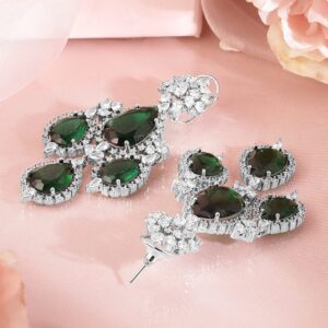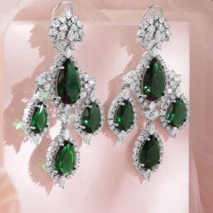 Earrings : These luxurious 18K gold-plated chandelier earrings feature striking emerald green stones and sparkling cubic zirconia, adding an opulent touch to your evening or festive look. Occasion : Bring your style to a whole new level with this handcrafted piece of jewellery. When you’re celebrating a special Occasion : – a birthday, wedding, or personal milestone – this piece adds that extra something that makes us feel special and looking our best. Material : & Care Dimension : Length : 7.5gm, Width: 3.5cm Material: Alloy Net Weight: 30 Gram Net Quantity: 1 Pair of Earrings Care Label: It is advisable to avoid contact with water and organic chemicals i.e. perfume sprays. Store jewellery in airtight box. After use, wipe the jewellery with soft cotton cloth.