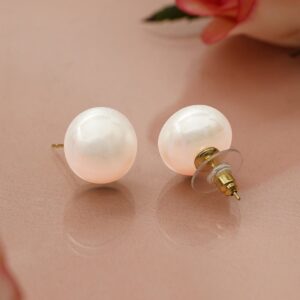Earrings : 18K gold-plated brass medium stud earrings with glossy white pearl finish, offering timeless elegance for daily wear, office, party, and gifting occasions. Versatile for Occasions: A perfect pick for casual brunches, dinner dates, or party glam, these bold studs effortlessly complement both western and Indo-fusion outfits for women & girls. Material : & Care Dimension : Length : 1 cm ; Width : 1 cm Net Weight : 10 Gram Net Quantity : 1 Pair Of Earrings Material : Brass Care Label : It is advisable to avoid contact with water and organic chemicals i.e. perfume sprays. Store jewellery in airtight box. After use, wipe the jewellery with soft cotton cloth.
