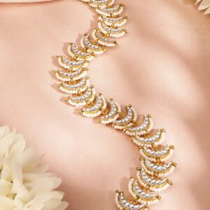 Head Jewellery : This 18K gold-plated matha patti features intricate Kundan detailing and pearl bead accents, adding a regal and traditional touch to bridal or festive looks. Occasion : Bring your style to a whole new level with this handcrafted piece of jewellery. When you’re celebrating a special Occasion : – a birthday, wedding, or personal milestone – this piece adds that extra something that makes us feel special and looking our best. Material : & Care Dimension : Length : 27 cm, Width: 2 cm Net Weight: 30.93 g Net Quantity : 1 Head Jewellery Material :Brass Care Label : It is advisable to avoid contact with water and organic chemicals i.e. perfume sprays. Store jewellery in airtight box. After use, wipe the jewellery with soft cotton cloth.