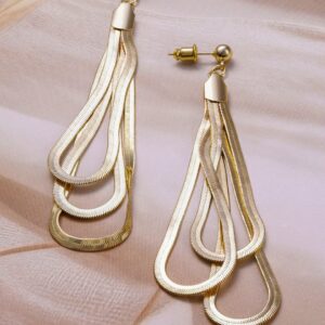 Earrings : Discover the elegance of 18K Gold Plated Multi-Layered Long Dangle Earrings with Teardrop Design. This piece combines quality craftsmanship with a timeless design, making it perfect for any occasion. Elevate your style effortlessly and enjoy compliments on your refined taste. A must-have addition to your jewelry collection. Occasion : Bring your style to a whole new level with this handcrafted piece of jewellery. When you’re celebrating a special Occasion : – a birthday, wedding, or personal milestone – this piece adds that extra something that makes us feel special and looking our best. Material : & Care Dimension : Earrings Size :Length : 10 cm, Width : 0.8 cm Material :Brass Care Label : It is advisable to avoid contact with water and organic chemicals i.e. perfume sprays. Store jewellery in airtight box. After use, wipe the jewellery with soft cotton cloth.