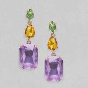 Earrings : These 18K gold plated drop earrings by feature vibrant green, yellow, and purple gemstones. The elegant design showcases a rich multicolor look, perfect for adding a touch of luxury. Occasion : Bring your style to a whole new level with this handcrafted piece of jewellery. When you’re celebrating a special Occasion : – a birthday, parties or personal milestone – this piece adds that extra something that makes us feel special and looking our best. Material & Care Dimension : Size : Length : 6 cm ; Width : 2 cm Material : Brass Weight : 15g Net Qnty : 1 Pair Earrings Care Label : It is advisable to avoid contact with water and organic chemicals i.e. perfume sprays. Store jewellery in airtight box. After use, wipe the jewellery with soft cotton cloth.