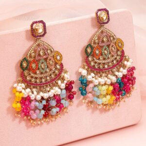 Be the first to review “18K Gold-Plated Multicolor Kundan & Pearl Studded Dome-Shaped Long Chandelier Earrings”