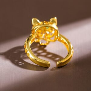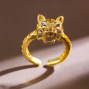 Ring : This 18K gold-plated openable adjustable ring features a bold panther motif with intricate detailing, making it a statement accessory that exudes strength, confidence, and elegance. Occasion : Bring your style to a whole new level with this handcrafted piece of jewellery. When you’re celebrating a special Occasion : – a birthday, wedding, or personal milestone – this piece adds that extra something that makes us feel special and looking our best. Material : & Care Dimension : Size : 6 Net Weight: 3.24 g Net Quantity : 1Ring Material :Brass Care Label : It is advisable to avoid contact with water and organic chemicals i.e. perfume sprays. Store jewellery in airtight box. After use, wipe the jewellery with soft cotton cloth.