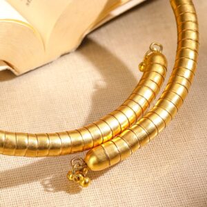 This 18K gold-plated oxidized choker necklace features a bold shell-inspired pendant with spiral detailing and chunky collar-style beads—ideal for artistic, ethnic, and statement looks for women & girls. The oxidized gold plated choker make it a unique and eye-catching addition to your jewelry collection. Material & Care Dimension : Necklace : 17 cm ; Width : 10 cm Material: Brass Net Weight: 52.05 Gram Net Quantity: 1 Necklace Care Label: It is advisable to avoid contact with water and organic chemicals i.e. perfume sprays. Store jewellery in airtight box. After use, wipe the jewellery with soft cotton cloth.