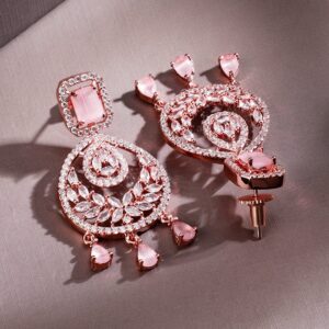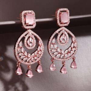 18K Gold-Plated Pastel Pink AD & Cubic Zirconia Studded Chandelier Earrings – Rose Gold