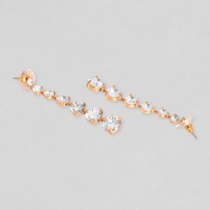 Drop Earrings You can never go wrong with this classic piece of jewellery. With just the right amount of charm and style, it can take you from a busy day at work to an impromptu night out with colleagues or friends. Occasion : Bring your style to a whole new level with this handcrafted piece of jewellery. When you’re celebrating a special Occasion : – a birthday, wedding, or personal milestone – this piece adds that extra something that makes us feel special and looking our best. Material : & Care Dimension : Length 7 cm; Width 1 cm: Material : Brass Collection : Western AD Care Label : It is advisable to avoid contact with water and organic chemicals i.e. perfume sprays. Store jewellery in airtight box. After use, wipe the jewellery with soft cotton cloth.