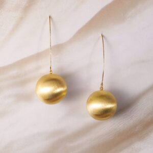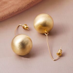 Earrings : Elevate your style with these 18K gold-plated round sphere drop earrings. Featuring a sleek and modern long wire hook design, these earrings offer a minimalist yet bold statement. Perfect for adding a touch of sophistication to both casual and formal outfits, making them an essential addition to your jewelry collection. Occasion : Bring your style to a whole new level with this handcrafted piece of jewellery. When you’re celebrating a special Occasion : – a birthday, wedding, or personal milestone – this piece adds that extra something that makes us feel special and looking our best. Material : & Care Dimension : Size : Length : 5.5 cm, Width : 2 cm Material :Copper Care Label : It is advisable to avoid contact with water and organic chemicals i.e. perfume sprays. Store jewellery in airtight box. After use, wipe the jewellery with soft cotton cloth.