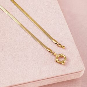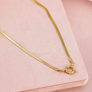 This elegant 18K gold-plated chain necklace is crafted from premium stainless steel, ensuring it is tarnish-free and waterproof. Its sleek and minimalistic design makes it a versatile piece that can be worn alone or layered with other necklaces. The demi-fine quality adds a touch of sophistication, making it a perfect addition to any jewelry collection. Material: Wipe with a clean, dry cloth to remove dust Size : Length : 20 cm, Width : 1 cm