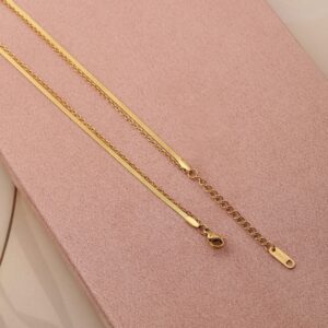 Embrace elegance with the 18K gold-plated dual-layered necklace, crafted from high-quality stainless steel. This tarnish-free and waterproof piece features a sleek design with a delicate floral motif and geometric accents, adding a touch of sophistication to your look. The layered design offers versatility, making it a perfect accessory for both casual and formal outfits. With its durable and luxurious finish, this necklace is an ideal choice for those seeking style and quality in one exquisite piece. Material: Wipe with a clean, dry cloth to remove dust Size : Length : 40 cm, Width : 1.3 cm