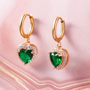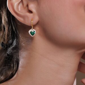 Earrings : These earrings feature a heart-shaped emerald stone, beautifully surrounded by cubic zirconia, set in 18K gold-plated stainless steel. The tarnish-free and waterproof design ensures lasting brilliance, making these earrings a luxurious and durable accessory for any wardrobe. Occasion : Bring your style to a whole new level with this handcrafted piece of jewellery. When you’re celebrating a special Occasion : – a birthday, wedding, or personal milestone – this piece adds that extra something that makes us feel special and looking our best. Material : & Care Dimension : Size : Length : 3 cm, Width : 1.2 cm Material :Stainless steel Care Label : It is advisable to avoid contact with water and organic chemicals i.e. perfume sprays. Store jewellery in airtight box. After use, wipe the jewellery with soft cotton cloth.