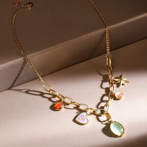 Necklace and Chains : A dazzling pair of 18K gold-plated hoop earrings with cubic zirconia-studded ball drops, adding a glamorous statement to any look. Occasion : Bring your style to a whole new level with this handcrafted piece of jewellery. When you’re celebrating a special Occasion : – a birthday, wedding, or personal milestone – this piece adds that extra something that makes us feel special and looking our best. Material : & Care Dimension : Length : 22 cm, Width : 1.3 cm Net Weight: 16.95 g Net Quantity : 1 Necklace Material :Stainless Steel Care Label : It is advisable to avoid contact with water and organic chemicals i.e. perfume sprays. Store jewellery in airtight box. After use, wipe the jewellery with soft cotton cloth.