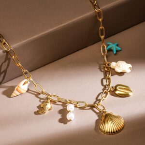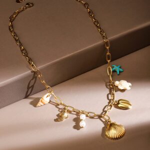 18K Gold-Plated Stainless Steel Tarnish-Free Waterproof Sea-Inspired Charm Necklace – Gold