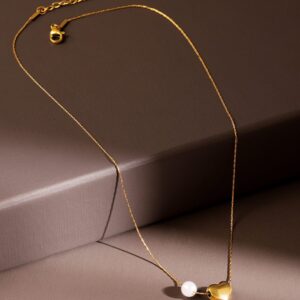 Be the first to review “18K Gold-Plated Stainless Steel TarnishFree Waterproof Heart & Pearl Charm Necklace – Gold”