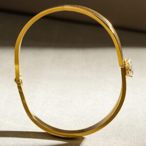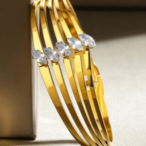 Bracelet : Adorn your look with these 18K gold-plated statement drop earrings, featuring crystal blue sapphire studded tops and intricately carved aqua drop beads. A luxurious blend of elegance and charm. Occasion : Bring your style to a whole new level with this handcrafted piece of jewellery. When you’re celebrating a special Occasion : – a birthday, wedding, or personal milestone – this piece adds that extra something that makes us feel special and looking our best. Material : & Care Dimension : Length : 6.5 cm, Width : 2.5 cm Net Weight: 2 g Net Quantity : 1 Bracelet Material :Stainless Steel Care Label : It is advisable to avoid contact with water and organic chemicals i.e. perfume sprays. Store jewellery in airtight box. After use, wipe the jewellery with soft cotton cloth.