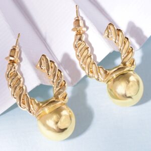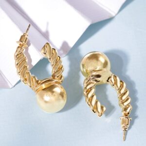 Earrings : These 18K gold-plated earrings feature twisted hoop detailing and bold ball drop accents. A statement accessory, perfect for adding modern elegance to any look with a unique design. Occasion : Bring your style to a whole new level with this handcrafted piece of jewellery. When you’re celebrating a special Occasion : – a birthday, wedding, or personal milestone – this piece adds that extra something that makes us feel special and looking our best. Material : & Care Dimension : Size : Length : 2 cm, Width : 0.5 cm Material :Brass Care Label : It is advisable to avoid contact with water and organic chemicals i.e. perfume sprays. Store jewellery in airtight box. After use, wipe the jewellery with soft cotton cloth.