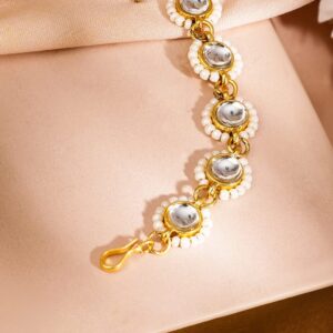 18K Gold-Plated White Kundan & Pearl Beaded Handcrafted Maang Tikka Head Jewellery – Gold