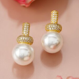 Be the first to review “18K Gold-Plated White Pearl Drop Minimal Earrings with Cubic Zirconia Accents”