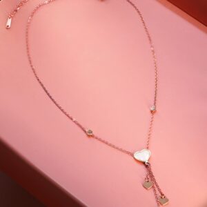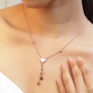 Necklace and Chains : Enhance your elegance with the 18K Rose Gold-Plated Necklace, featuring layered heart charms and a lustrous rose gold finish for a romantic and sophisticated look. Occasion : Bring your style to a whole new level with this handcrafted piece of jewellery. When you’re celebrating a special Occasion : – a birthday, wedding, or personal milestone – this piece adds that extra something that makes us feel special and looking our best. Material : & Care Dimension : Net Quantity : 1 Necklace Material :Brass Care Label : It is advisable to avoid contact with water and organic chemicals i.e. perfume sprays. Store jewellery in airtight box. After use, wipe the jewellery with soft cotton cloth.