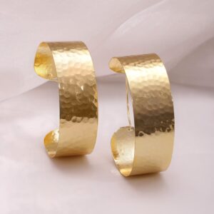 Elevate your style with ‘ Gold-Plated Circular Hoop Earrings. These classic hoops add a touch of timeless elegance to any outfit. With their versatile design and Gold-plated finish, they are perfect for both everyday wear and special occasions. Make a stylish statement with these stunning hoop earrings. Occasion : Bring your style to a whole new level with this handcrafted piece of jewellery. When you’re celebrating a special Occasion : – a birthday, wedding, or personal milestone – this piece adds that extra something that makes us feel special and looking our best. Material & Care Dimension : Length : 6.5 cm, Width : 6 cm Material : Brass Care Label : It is advisable to avoid contact with water and organic chemicals i.e. perfume sprays. Store jewellery in airtight box. After use, wipe the jewellery with soft cotton cloth.