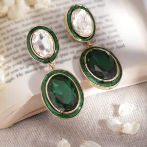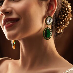 Be the first to review “22K Antique Gold Plated Emerald Crystal Zirconia Studded Green Enamel Drop Earring – Green”