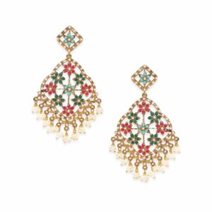 Be the first to review “22K Antique Gold Plated Multi Colour Pearl Studded Statement Chandbali Earrings – Gold::Multi Color”