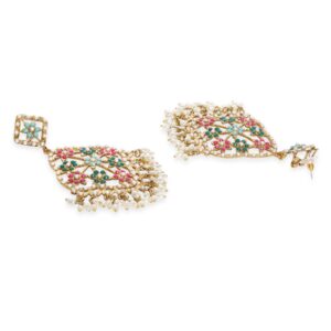 These statement dangle earrings are a striking blend of tradition and elegance, featuring 22K antique gold plating, intricate Kundan studding, and vivid green enamel work. Occasion : Bring your style to a whole new level with this handcrafted piece of jewellery. When you’re celebrating a special Occasion : – a birthday, wedding, or personal milestone – this piece adds that extra something that makes us feel special and looking our best. Material & Care Dimension : Earrings : 10 cm Material: Brass Net Weight: 38.63 Gram Net Quantity: 1 Pair of Earrings Care Label: It is advisable to avoid contact with water and organic chemicals i.e. perfume sprays. Store jewellery in airtight box. After use, wipe the jewellery with soft cotton cloth.