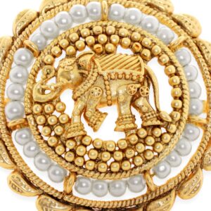Adorn your fingers with ‘ 22K Gold-Plated Beaded Elephant Charm Finger Ring. This unique and stylish ring features a delightful elephant charm, exuding charm and grace. With its intricate beaded design and gold-plated finish, it adds a touch of exotic elegance to your jewelry collection. Make a captivating statement with this exquisite finger ring. Occasion : Bring your style to a whole new level with this handcrafted piece of jewellery. When you’re celebrating a special Occasion : – a birthday, wedding, or personal milestone – this piece adds that extra something that makes us feel special and looking our best. Material & Care Dimension : Adjustable Material : Brass Care Label : It is advisable to avoid contact with water and organic chemicals i.e. perfume sprays. Store jewellery in airtight box. After use, wipe the jewellery with soft cotton cloth.