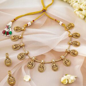 Necklace Set : Discover elegance with the Gold-Plated design, meticulously crafted for those who cherish luxury. This piece features precious stones for an eye-catching sparkle, making it perfect for special occasions. With a blend of high-quality materials and exquisite design, it promises both durability and style. The versatile look can complement a variety of outfits, adding a touch of sophistication. A must-have for enhancing your accessory collection with timeless elegance. Occasion : Bring your style to a whole new level with this handcrafted piece of jewellery. When you’re celebrating a special Occasion : – a birthday, wedding, or personal milestone – this piece adds that extra something that makes us feel special and looking our best. Material : & Care Dimension : Length : NS = 23 cm ; E = 2.5 cm, Width: NS = 2.5 cm ; E = 1.4 cm Material :Brass Care Label : It is advisable to avoid contact with water and organic chemicals i.e. perfume sprays. Store jewellery in airtight box. After use, wipe the jewellery with soft cotton cloth.
