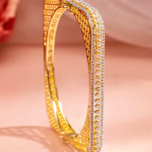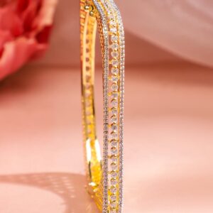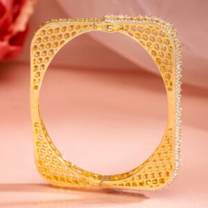 Elegant Brilliance: This 22K Gold-Plated Bracelet is a stunning display of sophistication, featuring exquisite Zirconia studding for a touch of timeless glamour. Material & Care Length : Free Size Material: Brass Net Weight: 17.7 Gram Net Quantity: 1 Bracelet Care Label: It is advisable to avoid contact with water and organic chemicals i.e. perfume sprays. Store jewellery in airtight box. After use, wipe the jewellery with soft cotton cloth.