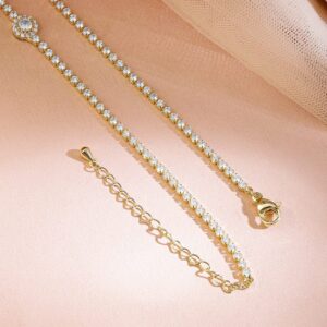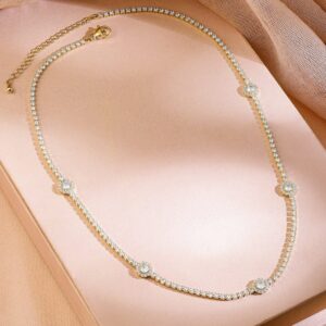Necklace and Chains : Adorn your neckline with this stunning 22K gold-plated floral charm tennis necklace by , featuring cubic zirconia-studded accents for an elegant and luxurious touch. Occasion : Bring your style to a whole new level with this handcrafted piece of jewellery. When you’re celebrating a special Occasion : – a birthday, festive, Parties or personal milestone – this piece adds that extra something that makes us feel special and looking our best. Material & Care Dimension : Necklace & Chain – Length Size : 19 cm Necklace & Chain – Width Size : 0.6 cm Weight : 7.42 g Material : Brass Net Quantity : 1 Necklace Care Label : It is advisable to avoid contact with water and organic chemicals i.e. perfume sprays. Store jewellery in airtight box. After use, wipe the jewellery with soft cotton cloth.