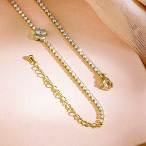 22K Gold-Plated Cubic Zirconia Studded Floral Charm Tennis Necklace