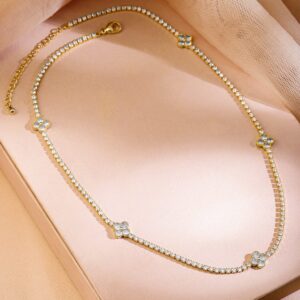 Be the first to review “22K Gold-Plated Cubic Zirconia Studded Floral Charm Tennis Necklace”