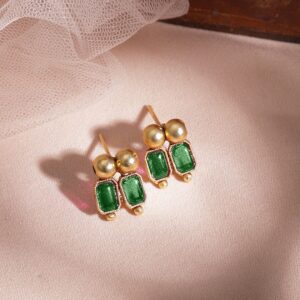 Be the first to review “22K Gold-Plated Emerald Green Stone Studded Traditional Necklace Set – Gold”